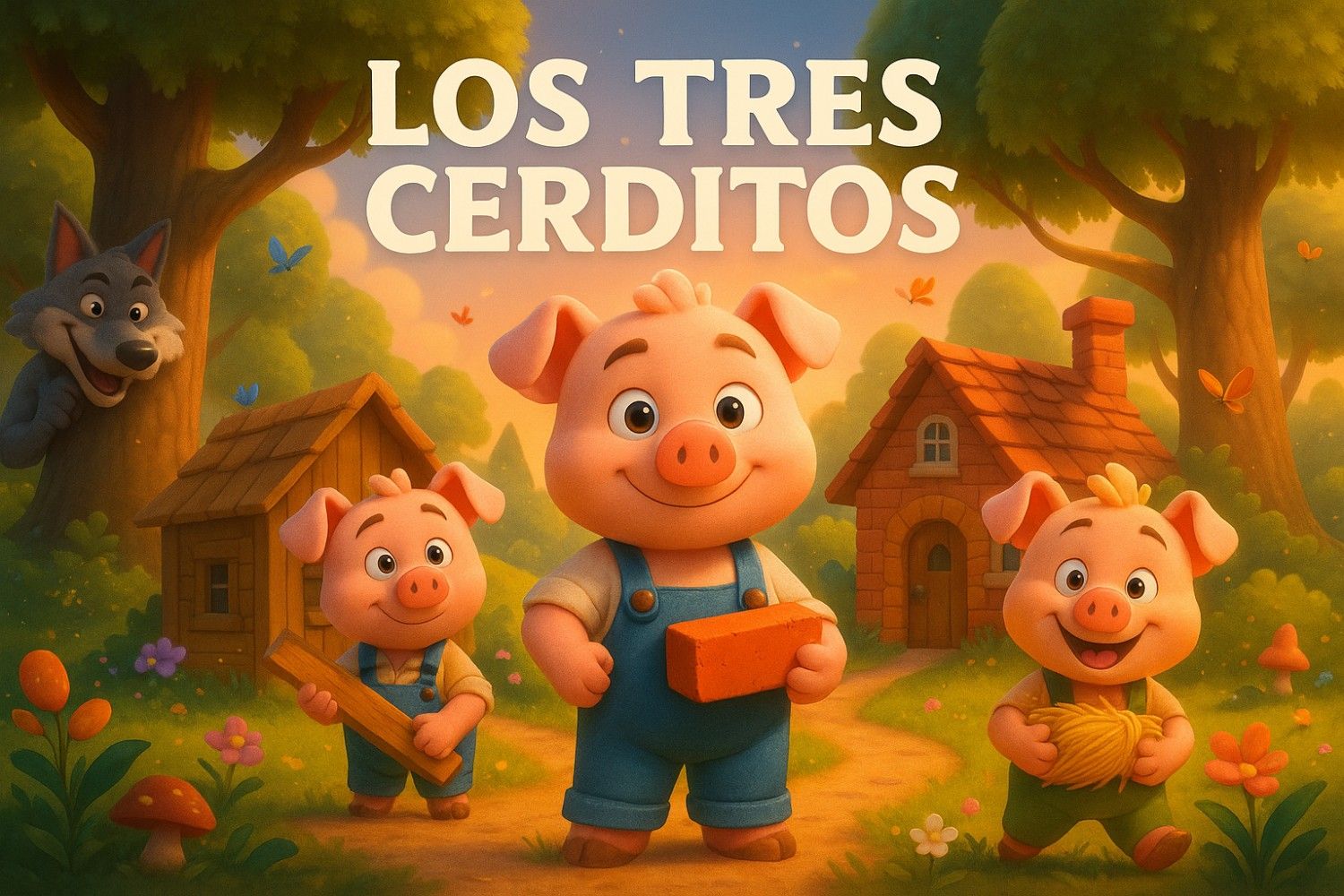 Había una vez, en un bosque lleno de flores y árboles altos, tres cerditos que eran hermanos. Cada uno tenía una personalidad distinta: el menor era juguetón y un poco impaciente; el mediano era cariñoso, pero algo distraído; y el mayor era tranquilo, pensativo y muy trabajador.